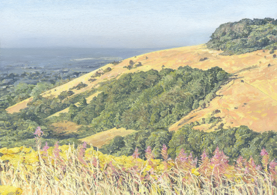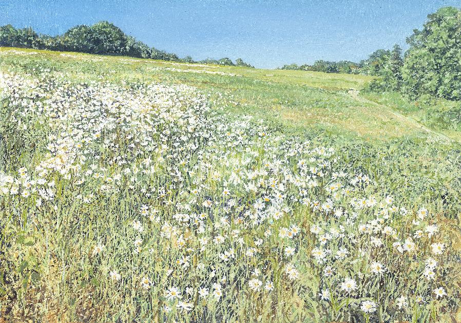 I am currently painting a new collection of works, which focus on capturing the meadow flowers that adorn the slopes of these rolling hills.